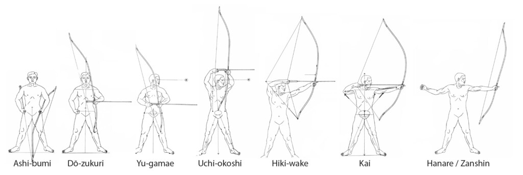 Zanshin is the final stage of shahō hassetsu (射法八節) — the eight fundamental stages of shooting that form the framework and standard of kyudo. These stages, with zanshin as their culmination, are as follows (as described by the All Nippon Kyudo Federation):