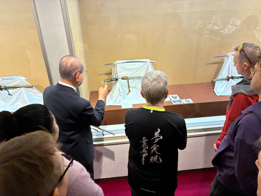The swords range from Kamakura-era masterpieces to Edo-period katana, each showing the evolution of craftsmanship. The hamon, the temper lines, shimmer like ripples on water. Standing in front of them, our group fell silent again. It was a different kind of meditation. The perfection of the blade speaks its own language.