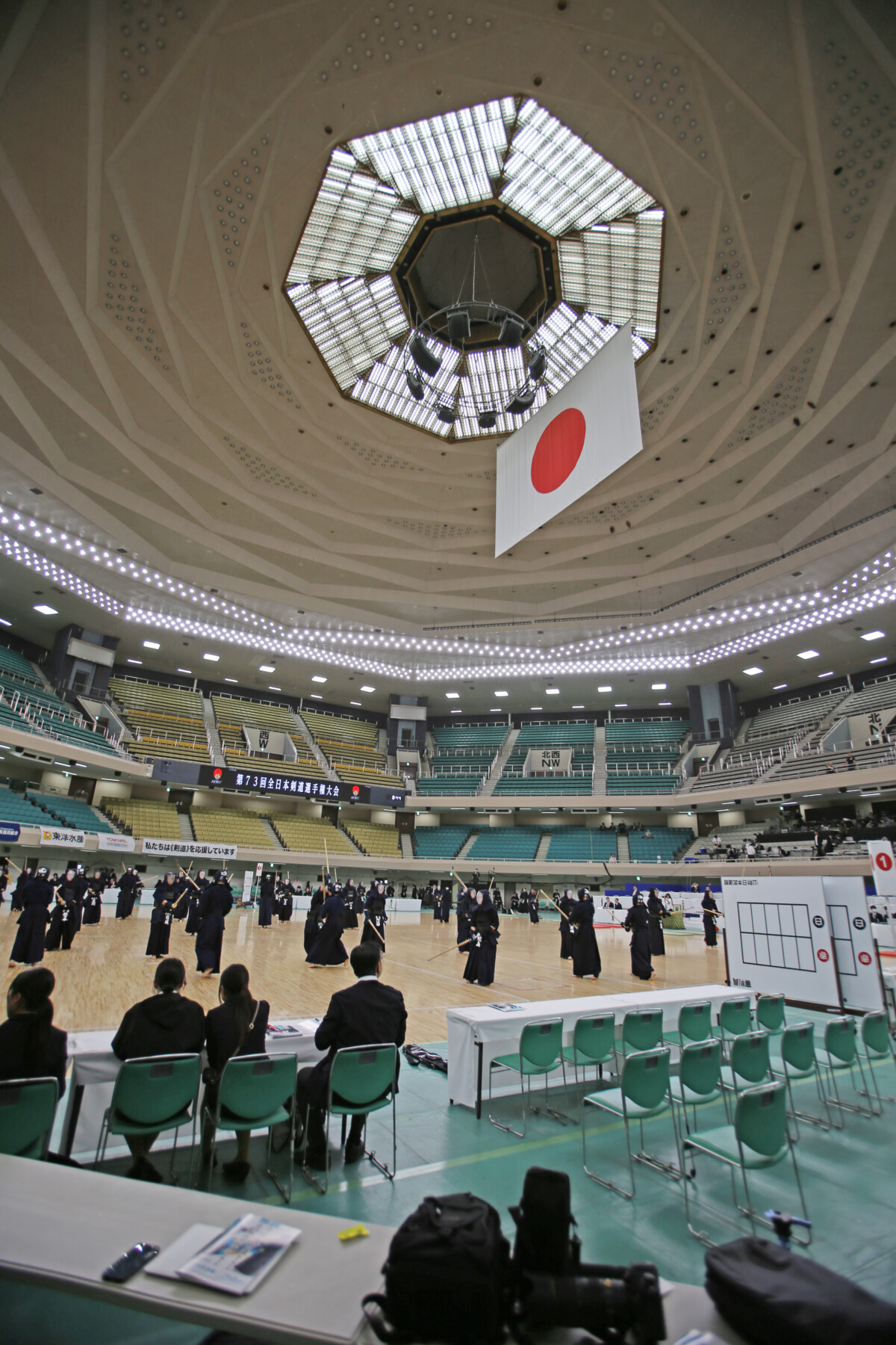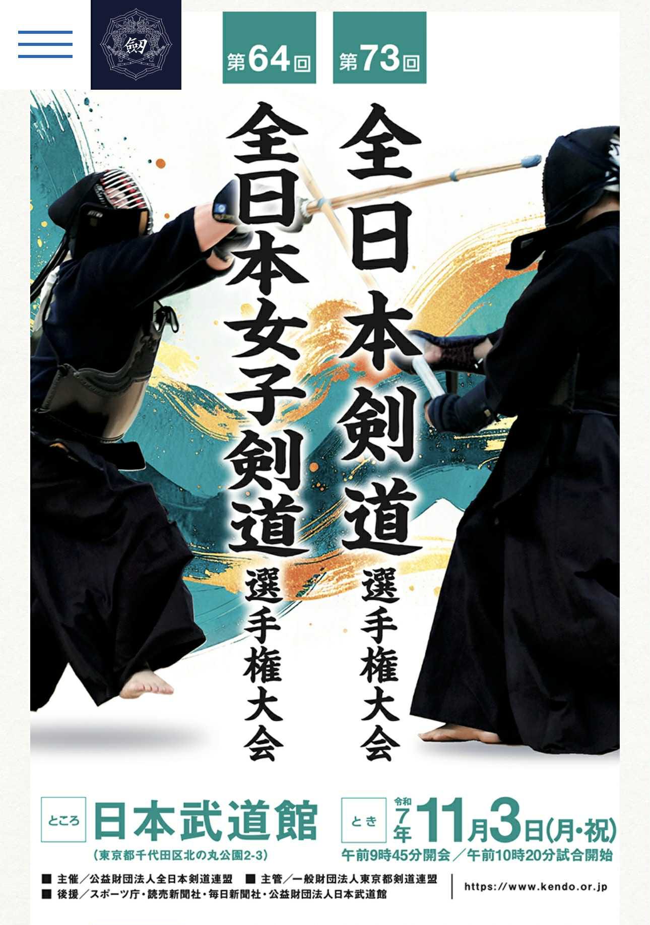Monday (Nov. 3) marked the 73rd Men’s All‑Japan Kendo Championship, held alongside the 64th Women’s event. (Kendo World videos of the men’s and women’s finals are pasted at the bottom of this blog post.) It always begins the same way, like a well‑rehearsed ritual. Around nine, the crowd trickles in, murmuring as the Nippon Budokan wakes up with that peculiar hum of anticipation and respect. Around 9:45, ten thousand heads tilt upward toward the Hinomaru suspended high in the rafters. The anthem rises, the bow follows, and then the great taiko roars through the hall like thunder, announcing that the day of reckoning has begun.