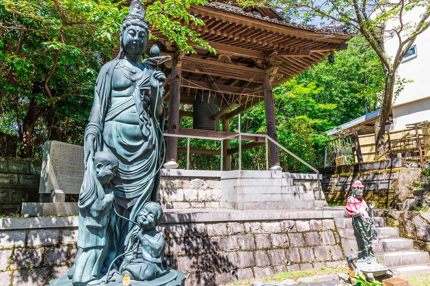 If the archaeology gives Kasatori its bones, the myths give it a heartbeat. Just a 20-minute short walk up the mountain to my east is Iwamadera Temple. It is located on the slopes of Mt. Iwama, 443 metres above sea level, on the border between Ōtsu City in Shiga Prefecture and Uji City in Kyoto Prefecture, and is known as Iwama-san Shōbō-ji. It is the twelfth temple of the Saigoku Thirty-Three Kannon Pilgrimage and home to the Asekake Kannon, the “Sweating Kannon” (Goddess of Mercy). The story goes that this Bodhisattva descends into the 36 hells each night to rescue tormented souls, returning to the temple drenched in divine sweat. See where I’m going with “Hell’s Den”?