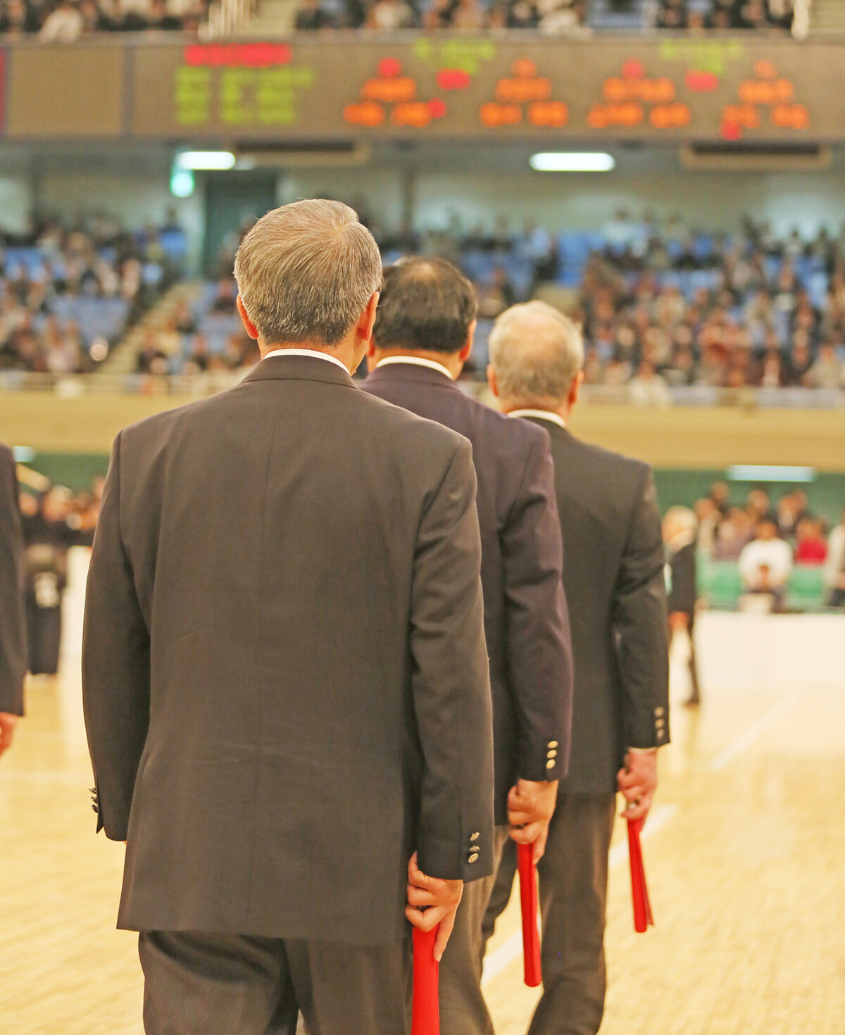 You only get one chance to make the correct decision. There are no video replays in kendo. Just three sets of naked eyes making calls in real time amid flurries of frenetic attacks. Your job as shinpan is to be in the right place at the right time to make the right call. It did not make our jobs easier when some of the supercharged shiai-sha essentially sprinted the equivalent of a marathon inside the shiai-jo like two combatting spinning tops. “Adjudicating 8th Dan matches would be so much easier,” I thought. At least they stay still most of the time and usually score when they do move.
