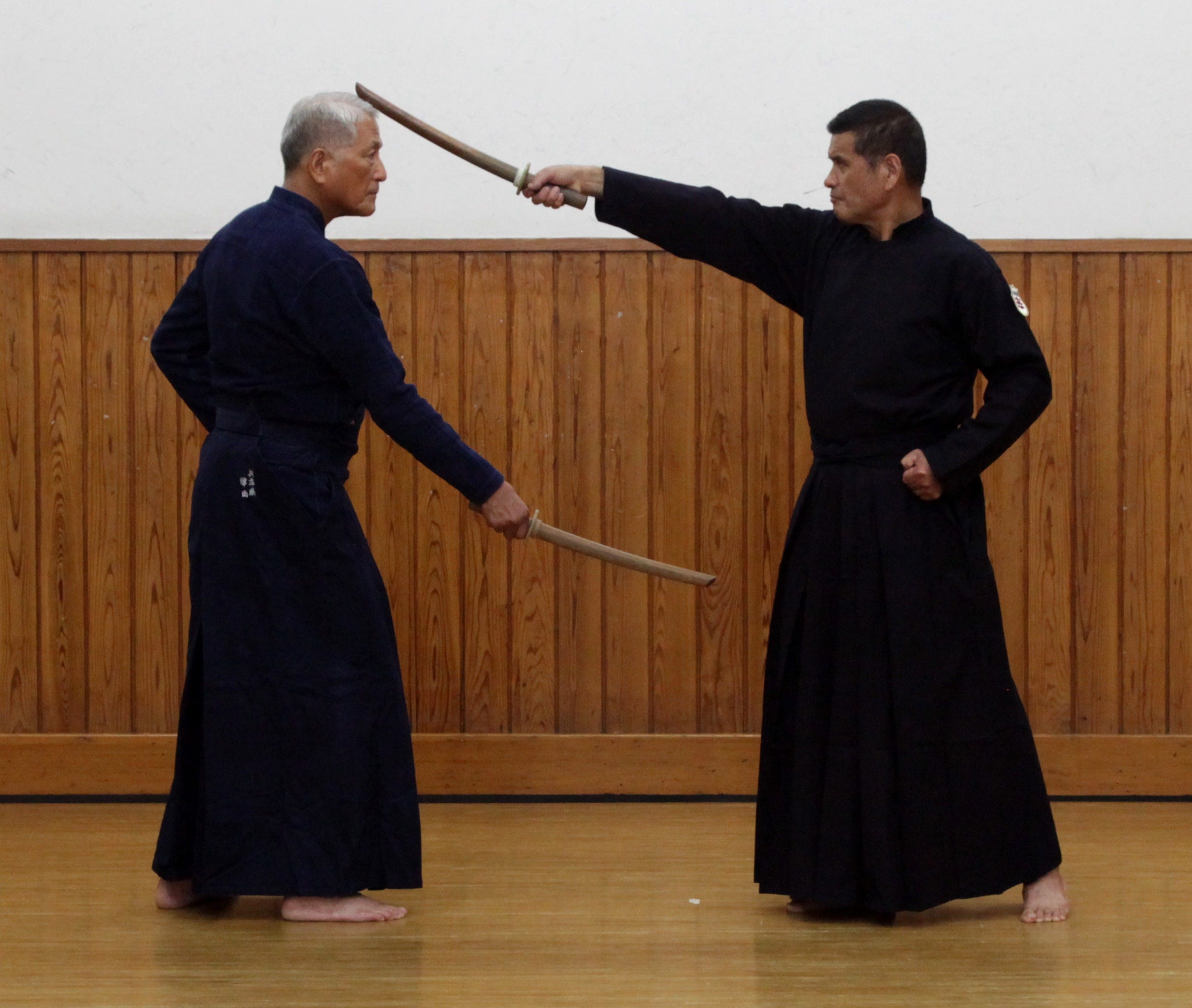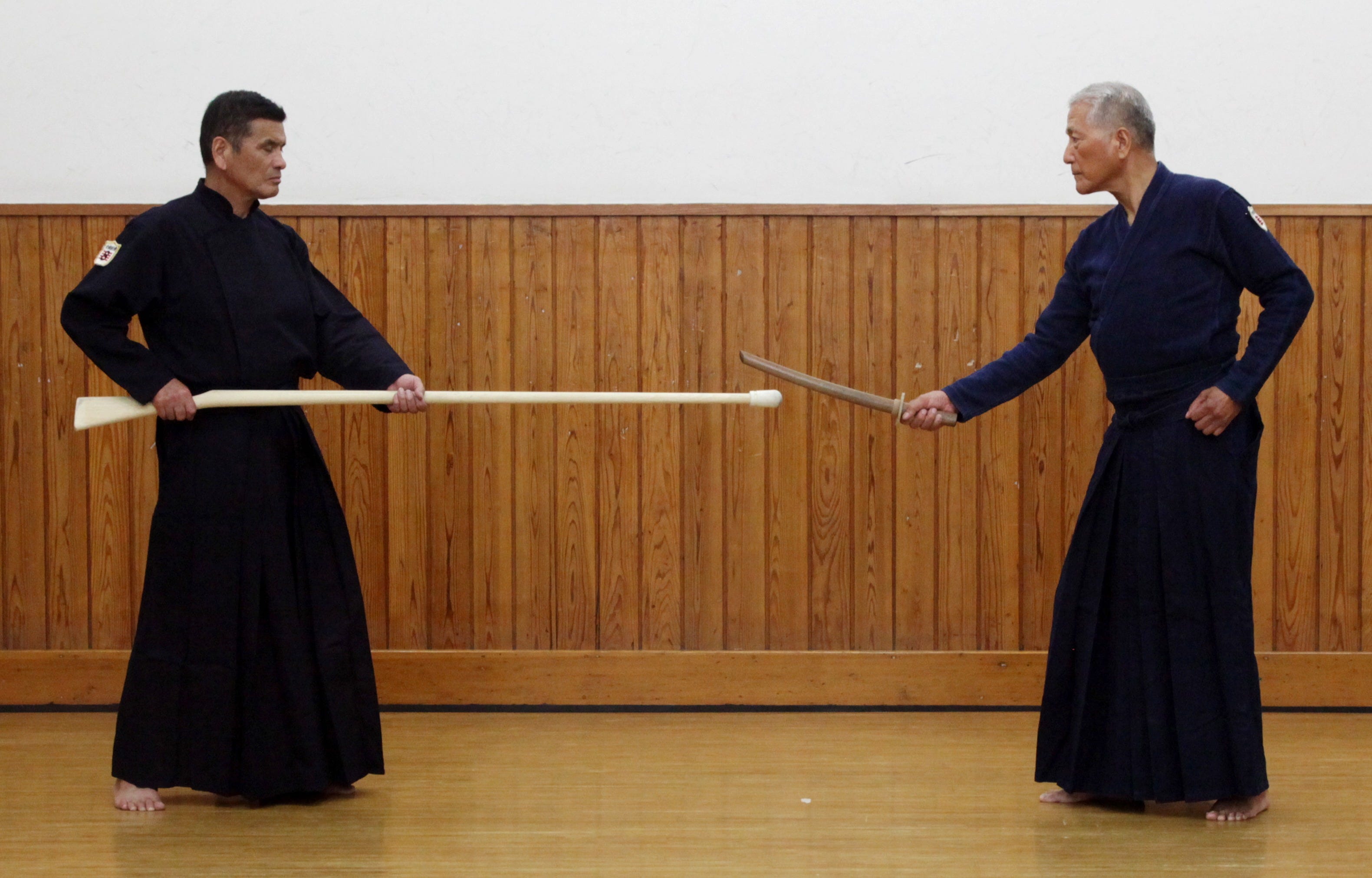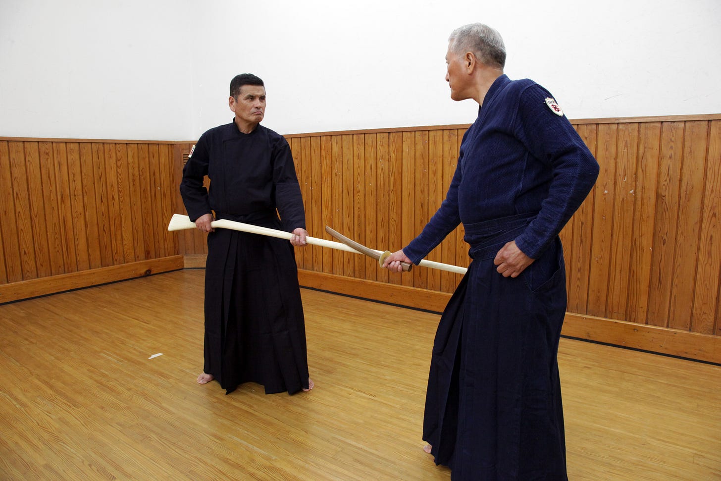 Tankendo and jukendo kata come in many combinations. Mokujū versus mokujū. Tachi (sword) versus mokujū. Tanken versus mokujū. Tanken versus tachi. Tanken versus tanken. Did I get them all? Each pairing forces you to recalibrate your sense of distance from scratch. You cannot coast on habit. The maai that keeps you safe but ready to strike in one exchange will get you well-and-truly skewered in another. This constant recalibration is exhausting, but it is also very educational.