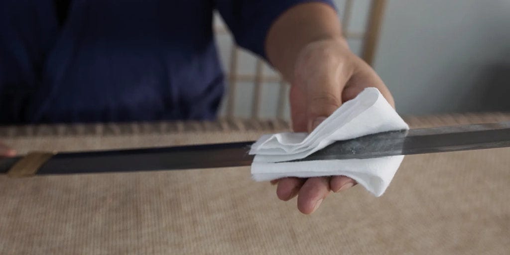 Let me take iaido as an example. Practitioners always inspect the mekugi (the peg securing the blade to the hilt) and perform tōrei, a bow to the sword. After practice, the blade is cleaned, lightly oiled, and carefully returned to its scabbard. Treating one’s equipment almost as if it were alive is characteristic of budo. One never steps over weapons. I was once taught by a kendo teacher that when removing my men, I should raise it in front of the face so as not to expose my flushed, breathless expression to others. The inside of the men is wiped first with a tenugui. This is done to express gratitude to the armour that protected me during practice. Only after that should I wipe my own face and set the men down. It is difficult to think of many other sports in which such gratitude is shown toward equipment to this extent.